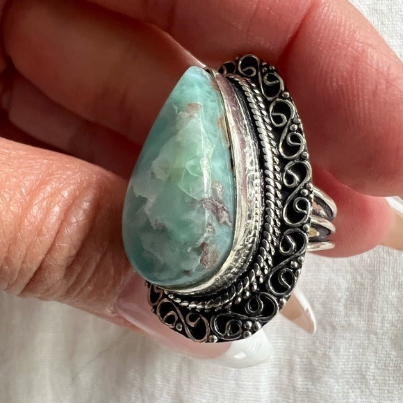925 WOW! Beautiful Ornate Caribbean Larimar Ring 7.25