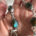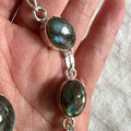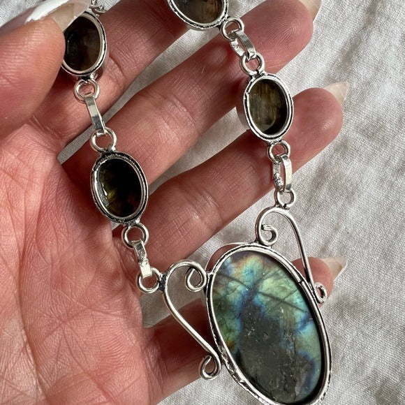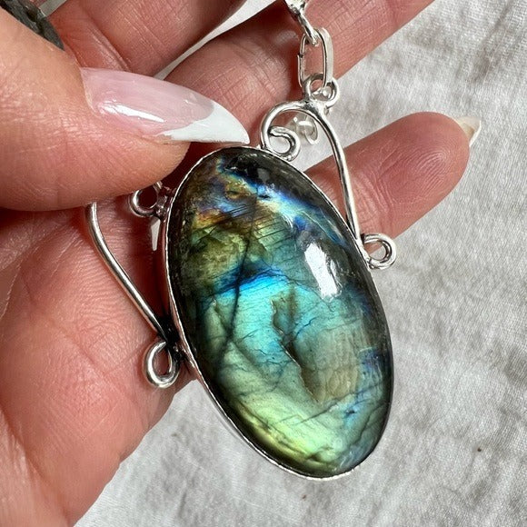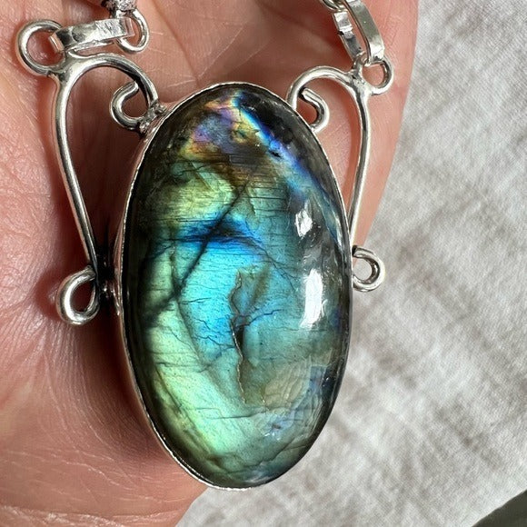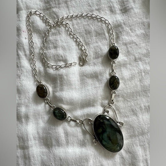 925 WOW! Gorgeous!! Rainbow Flash Labradorite 5 Stone Necklace Pendant
