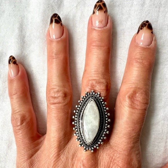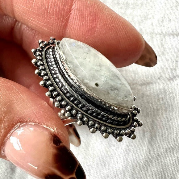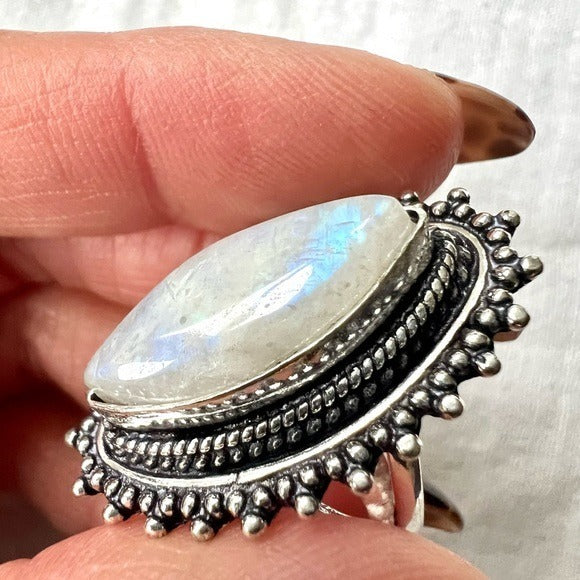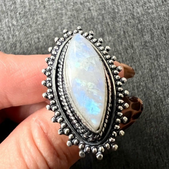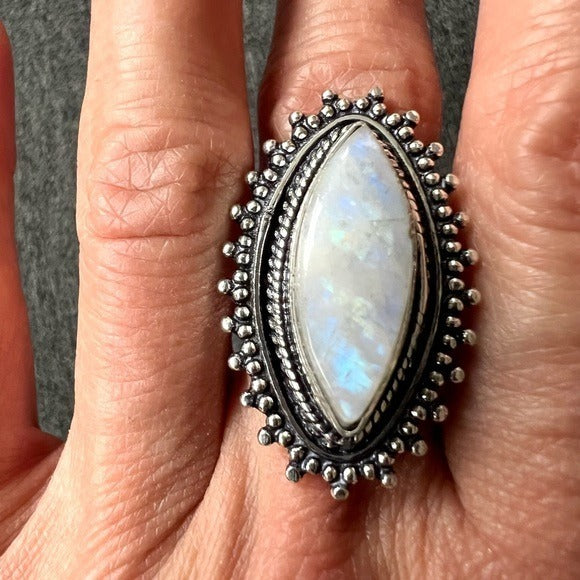 925 WOW! OMG! So Gorg! Rainbow Flash Moonstone Ring 7.25