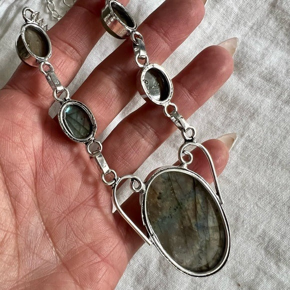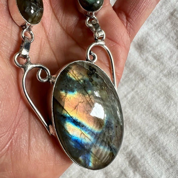 925 WOW! Rainbow Lightning Flash Labradorite 5 Stone Necklace