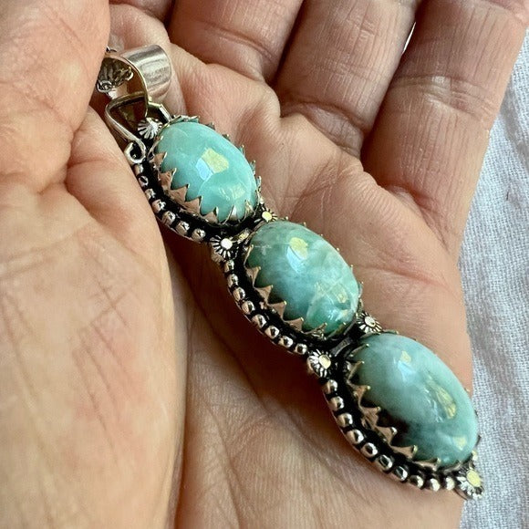 925 WOW! Triple Ornamental Larimar Pendant Necklace