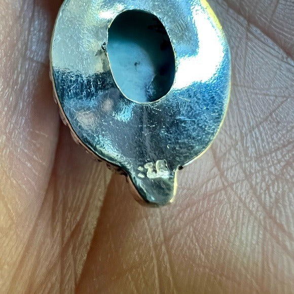 925 stamped, sterling silver overlay. Comes on an 18" chain.