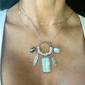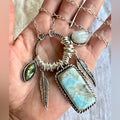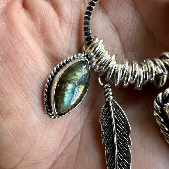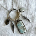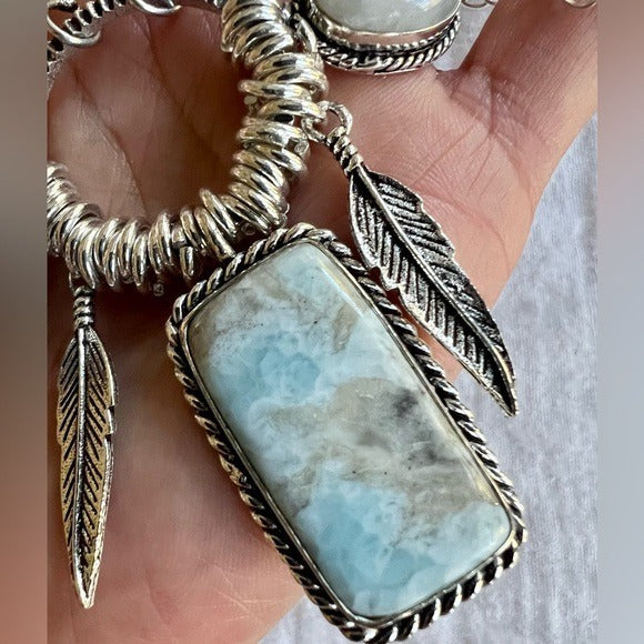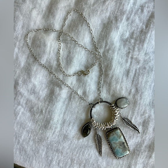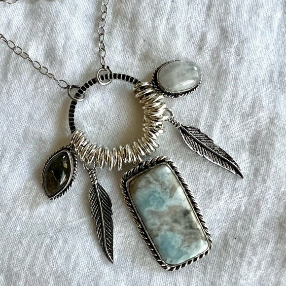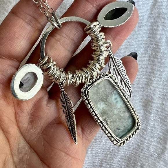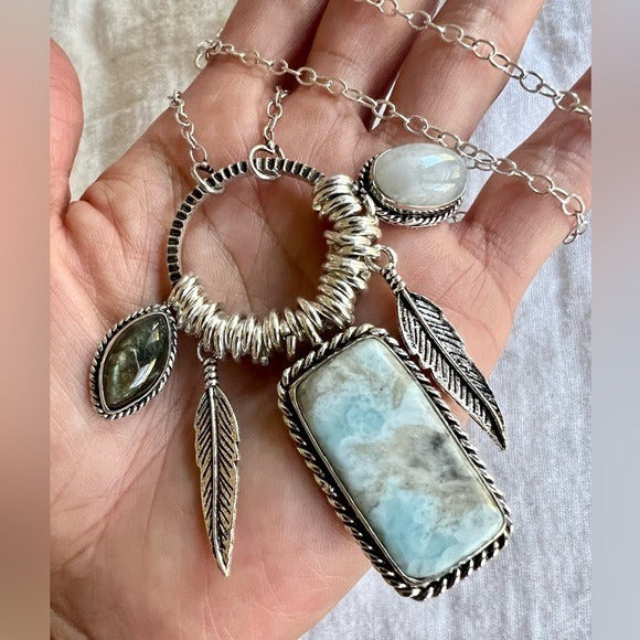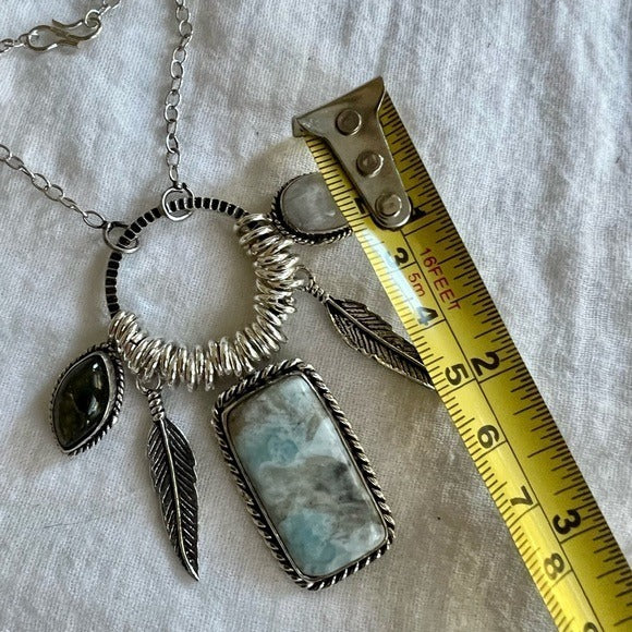 925 WOW WOW! Larimar + Flash Labradorite + Moonstone Charm Necklace Pendant