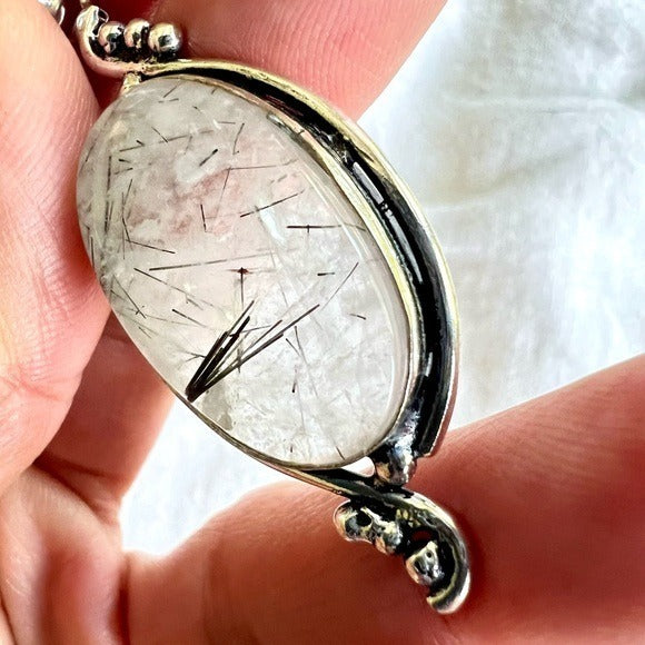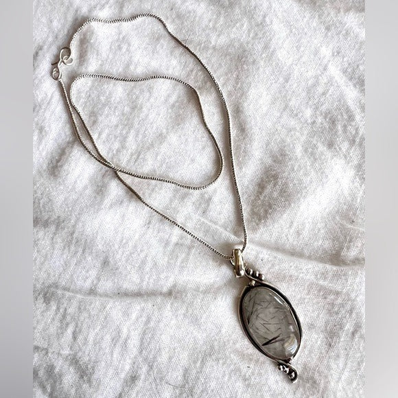 925 Yin Yang Tourmalated Quartz Pendant Necklace