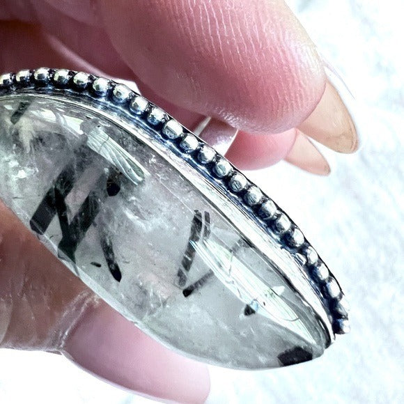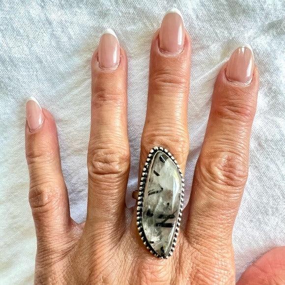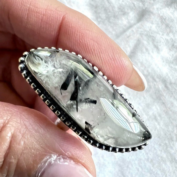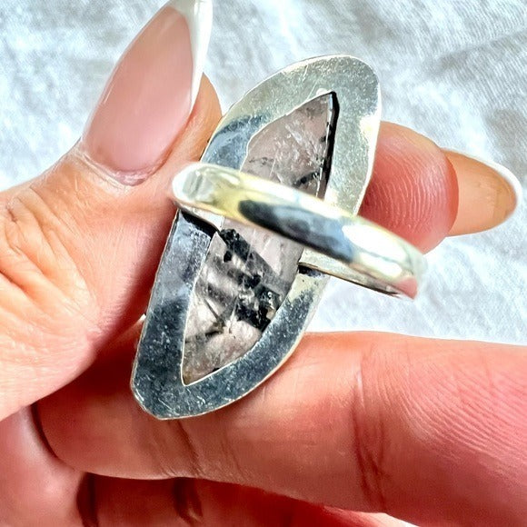 925 Yin Yang Tourmalated Quartz Ring 7.25